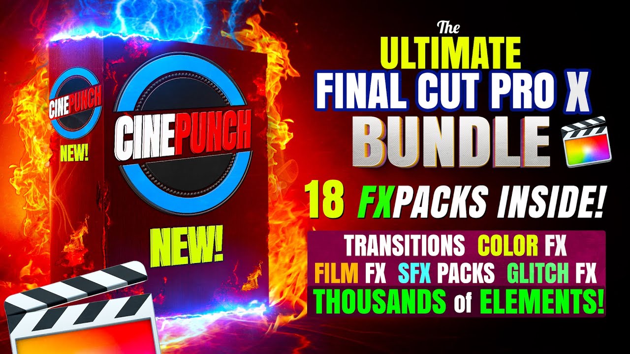 CINEPUNCH is a completely Massive Variety Bundle of Cinematic Tools, Assets, and Elements for Final Cut Pro X. Think of it as your Personal FX LIBRARY you can’t live without! It was created to help filmmakers and video editors have an abundance of tools for creativity while saving their money.
